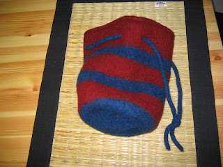 This was my first experiment with felting, and I'm rather pleased with the result. Mr.Q is totally fascinated by the process, and refers to it as "dreadlocking the knitting." He wants to know if everything I knit can be felted. Fortunately, our washing machine has only cold water hooked up to it, so any "experiments" he might attempt on his own will be unsuccessful. Otherwise I would have to hide all the scarves and my new socks.